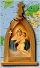 Praktycznie apostolat ten istnieje na całym świecie, podobnie jak Ruch Szensztacki z którego wyrasta. Szacuje się, że około 5 milionów rodzin każdego miesiąca otwiera swój dom dla Matki Bożej Pielgrzymującej. W Polsce pielgrzymuje ponad 400 kapliczek-obrazów i ich liczba ciągle wzrasta, kręgi znajdują się w parafiach na terenie wielu diecezji. Takim szczególnym przypadkiem jest parafia Szuszec w diec. katowickiej, gdzie jest 26 kręgów Pielgrzymującej Matki Bożej. Centrum i początek tego projektu jest w Ameryce Południowej, ale w Europie też szybko się rozwija. Planujemy, w ramach międzynarodowego apostolatu w 2012 roku w uroczystą koronację Matki Bożej Pielgrzymującej na Królową Nowej Ewangelizacji Europy. Maryja otwiera wiele drzwi… Dla mnie znakiem potwierdzającym te plany, było powołanie ostatnio, w dniu 12.10. 2010 r. przez Ojca św. Benedykta XVI Papieskiej Rady do spraw krzewienia Nowej Ewangelizacji! Uważam, że taka forma duszpasterstwa wpisuje się w nurt życia Kościoła, ciągle szukamy nowych form, odpowiednich dla współczesnego człowieka. Siostro, a może kilka słów wyjaśniających dla zainteresowanych samą idee Pielgrzymującej Matki Bożej. Jak to się wpisuje w polską maryjność?